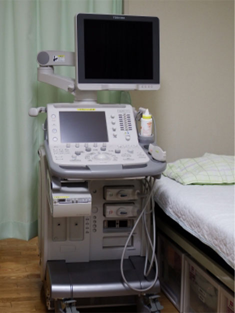 デジタル画像用超音波装置「Aplio300」を使用、子どもの急性虫垂炎など診断困難な場合に威力を発揮します。