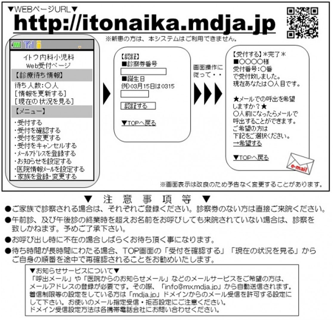 - WEB(携帯・パソコン)から当日の順番受付ができます。